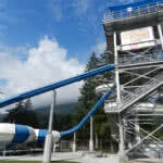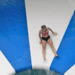 These exhilarating twin slides are for the thrill-seekers visiting the park. These slides can only be experienced by individuals who are above 48 inches tall, and are strong swimmers. The ride begins as you cannon through a steep black-hole flume, before emerging with a blast into a giant 30 foot “bowl-shaped” slide. You will swirl and rapidly cycle around for a few turns before drop-landing in the 9 foot pool below. This is easily one of the most extreme slides in the park!