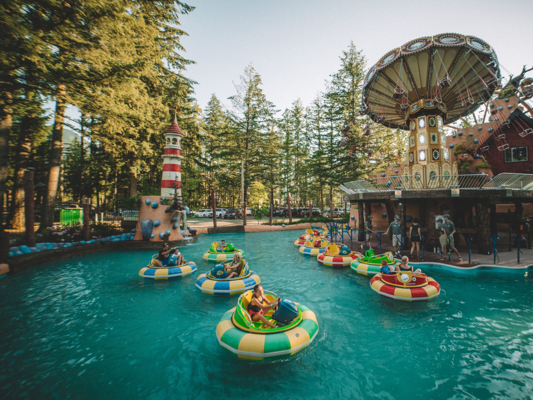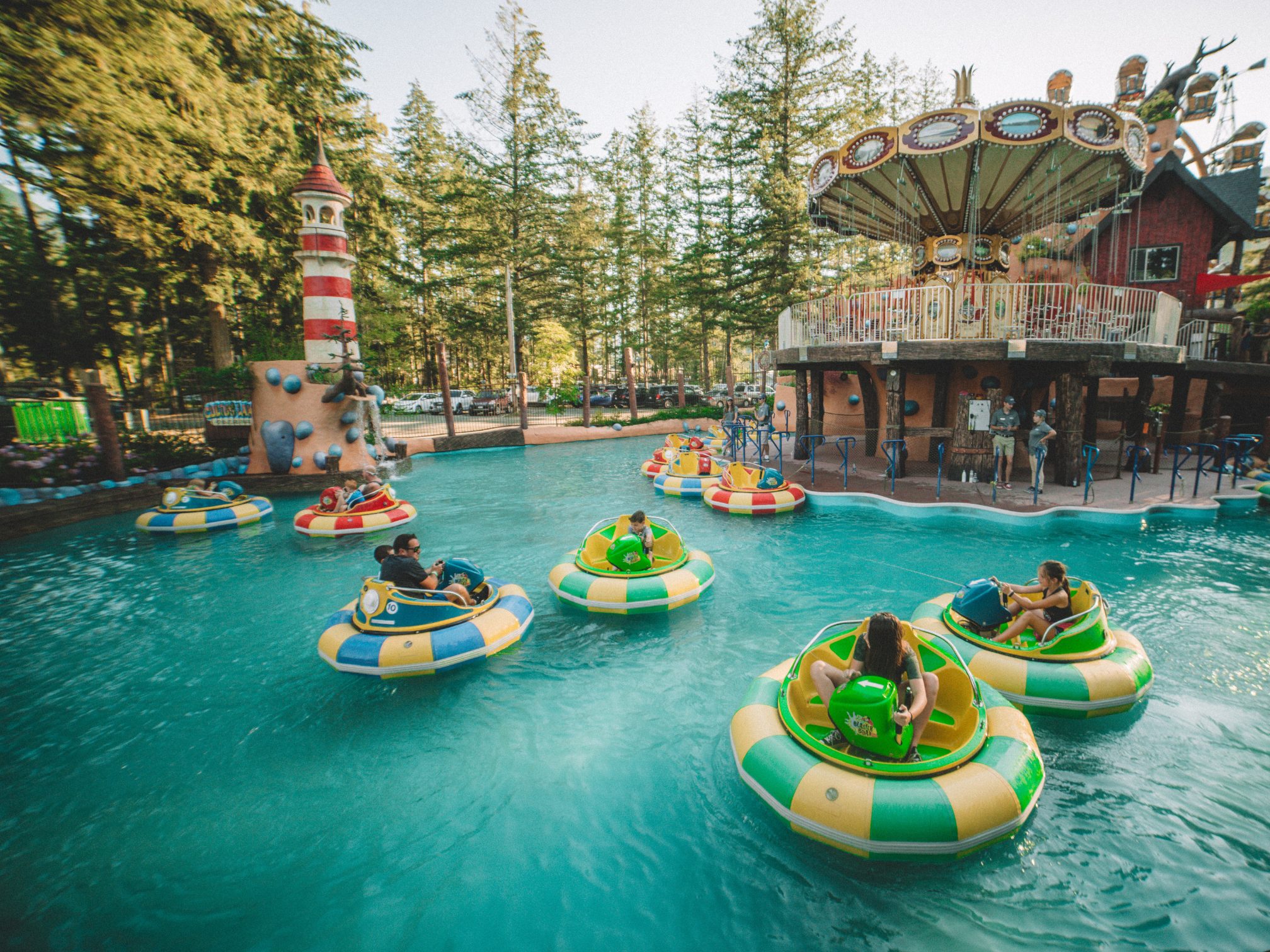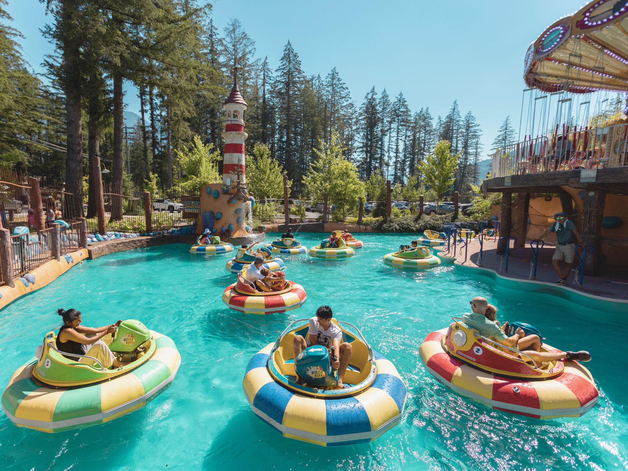 Each colorful bumper boat holds up to two riders—a driver and a junior passenger—so the whole family can join in on the fun. Whether you’re the one doing the splashing or the one getting soaked, laughter is guaranteed on this wet and wild adventure!