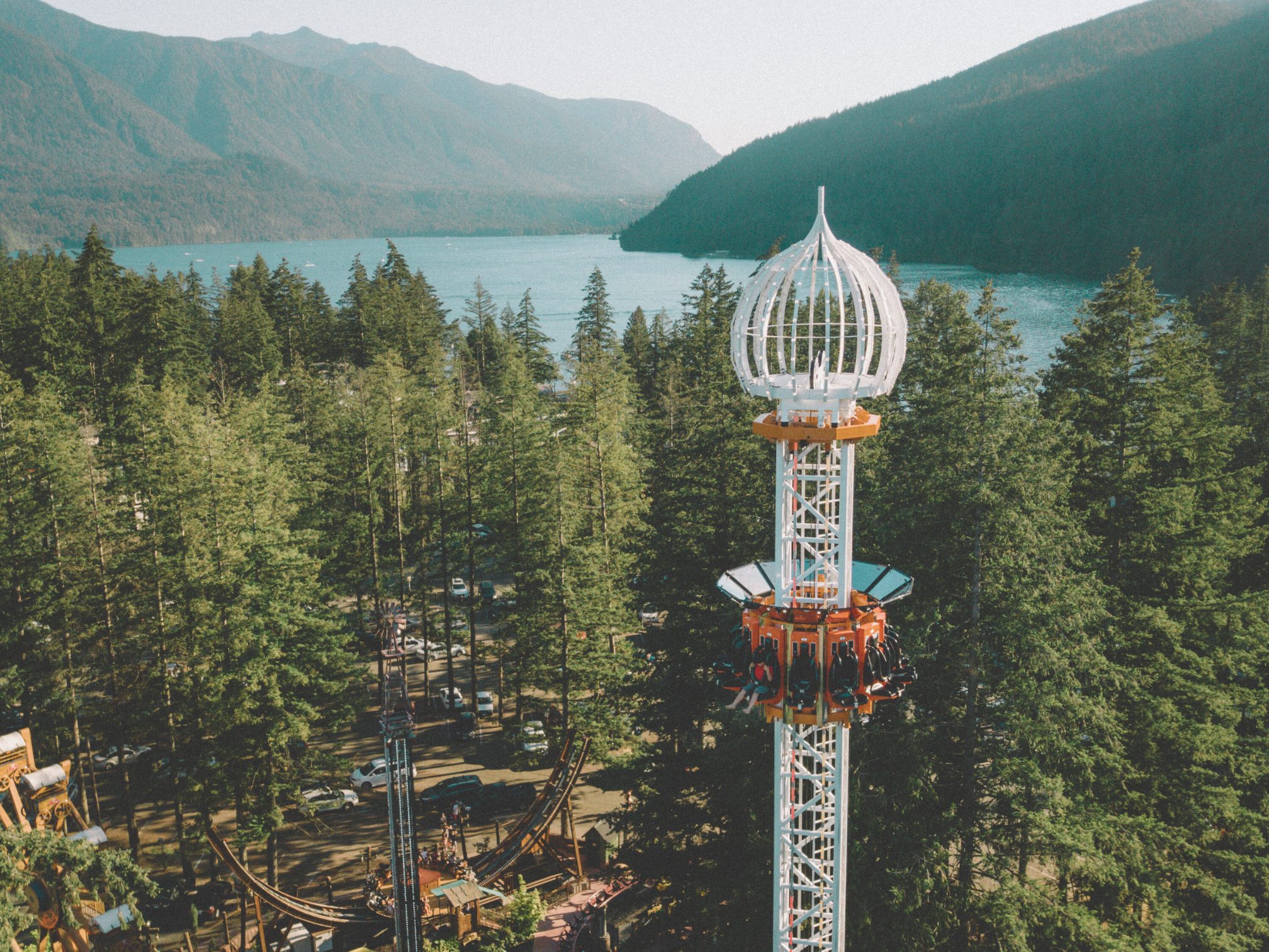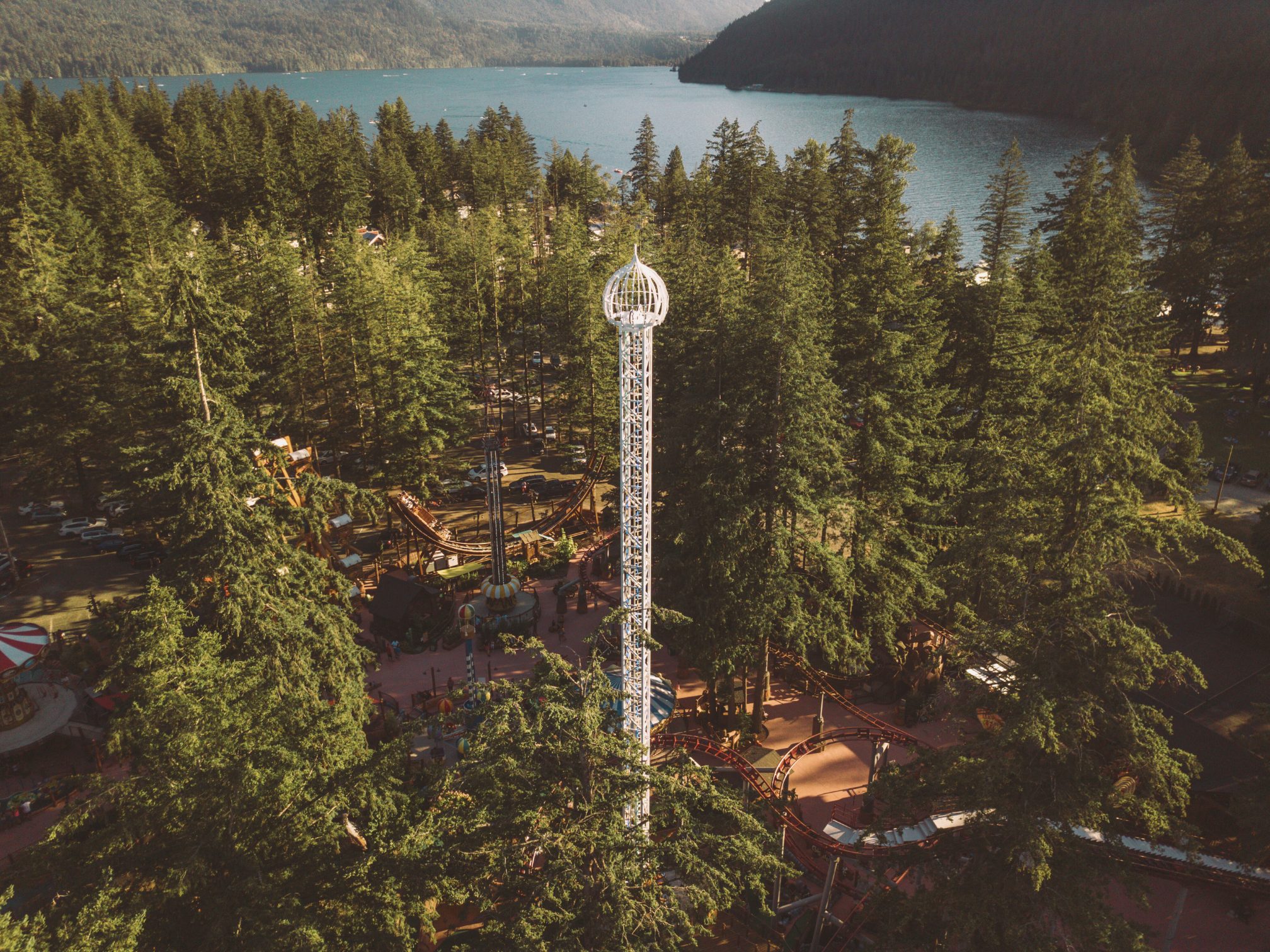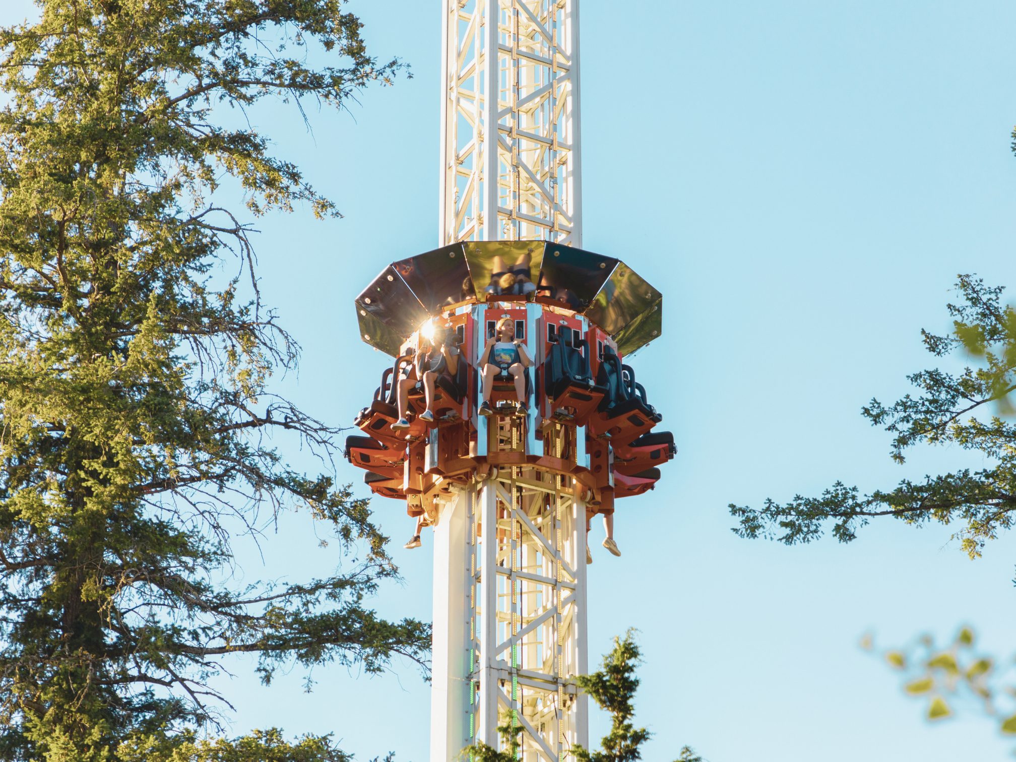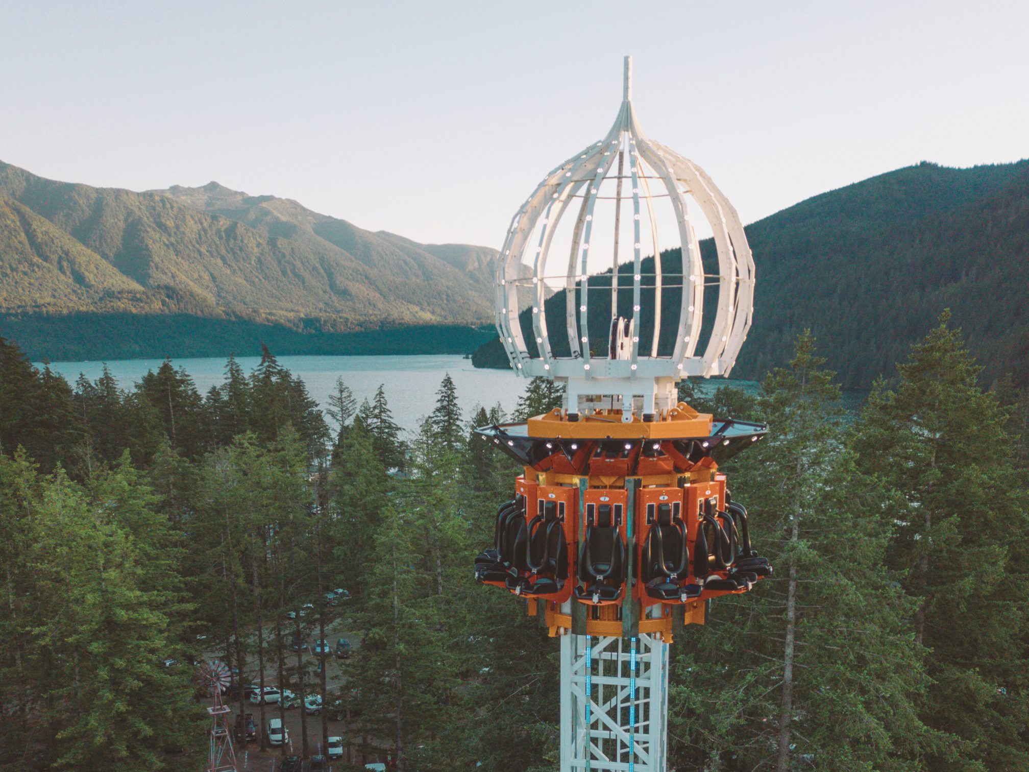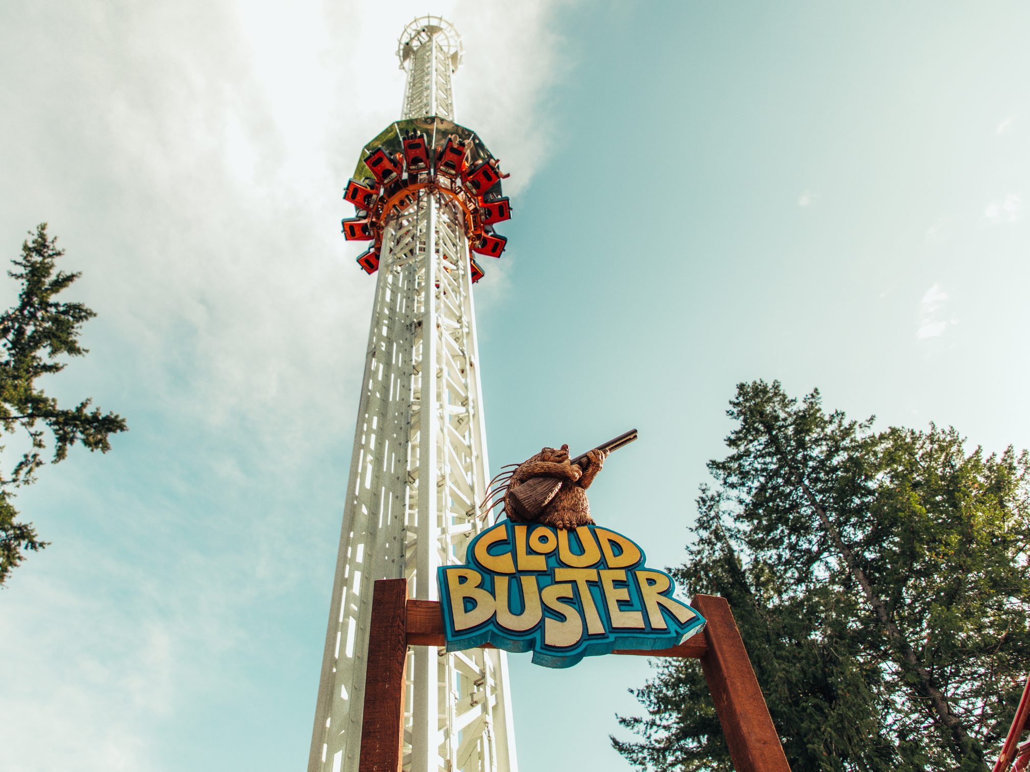 Soar to New Heights on the Cloud Buster! Towering 150 feet above the park, this is the ultimate ride for thrill seekers. Hold your breath as you slowly rise skyward for stunning views of Cultus Lake—then scream your lungs out as you plunge back down at breathtaking speed.