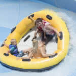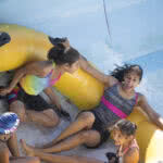 The Colossal Canyon is a state-of-the-art water attraction. Board our largest raft in the park, with a seating capacity of 5 people, or 4 adults per raft. This ride starts at an elevation of 75 ft and twists and winds its way through the trees for approximately 700 ft. One of the most popular rides in the park, Colossal Canyon will send you and your friends hurtling around corners, and high banks with waves crashing against the raft.