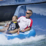 Are you afraid of the dark? Tubular Terror is a tube complex with 3 different slides to choose from! First, there is the black hole tube slide, where you can scream your way through the dark until you crash into the pool below. Then, there is the half closed / half open blue slide. This is a fast paced slide that is dark for the first half and opens up during the second half. It’s the perfect ride for those wanting to test their nerve before using the black hole. Finally, there is a blue slide that is completely open for those that aren’t fans of dark or enclosed slides. Three different slides with the same result: fun!